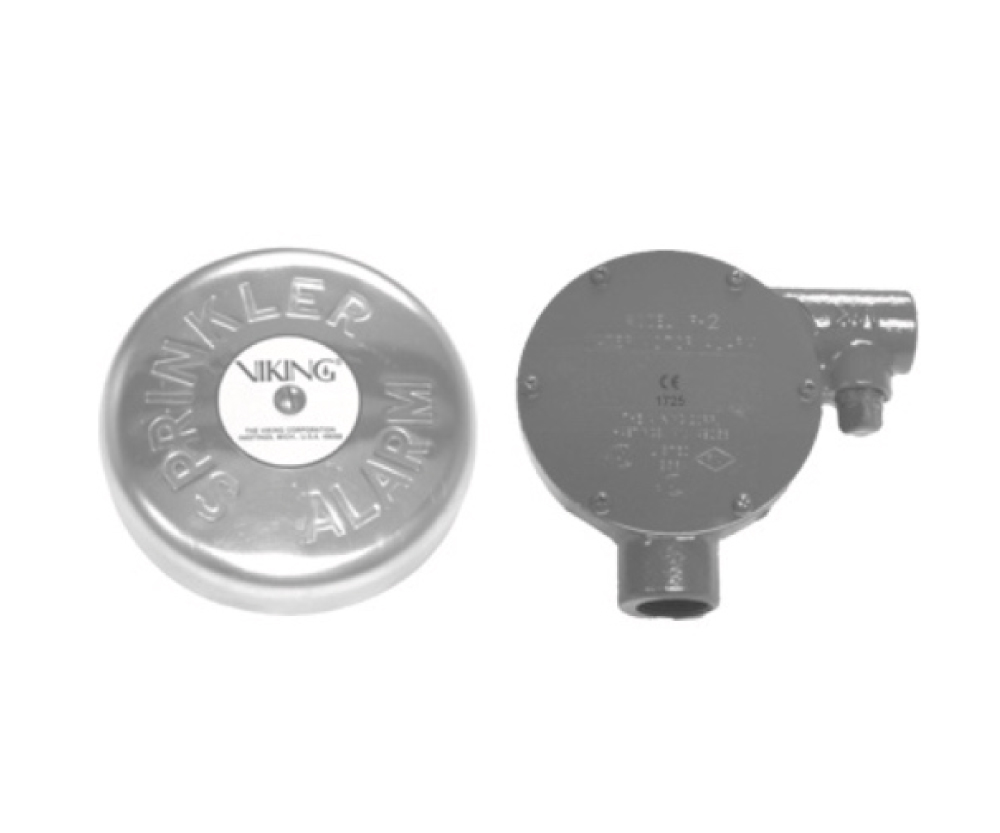 The Viking water motor alarms are mechanical devices actuated by a flow of water. They are designed to sound a continuous alarm while a sprinkler system operates. An alarm is a required component of every sprinkler system having more than 20 sprinklers.