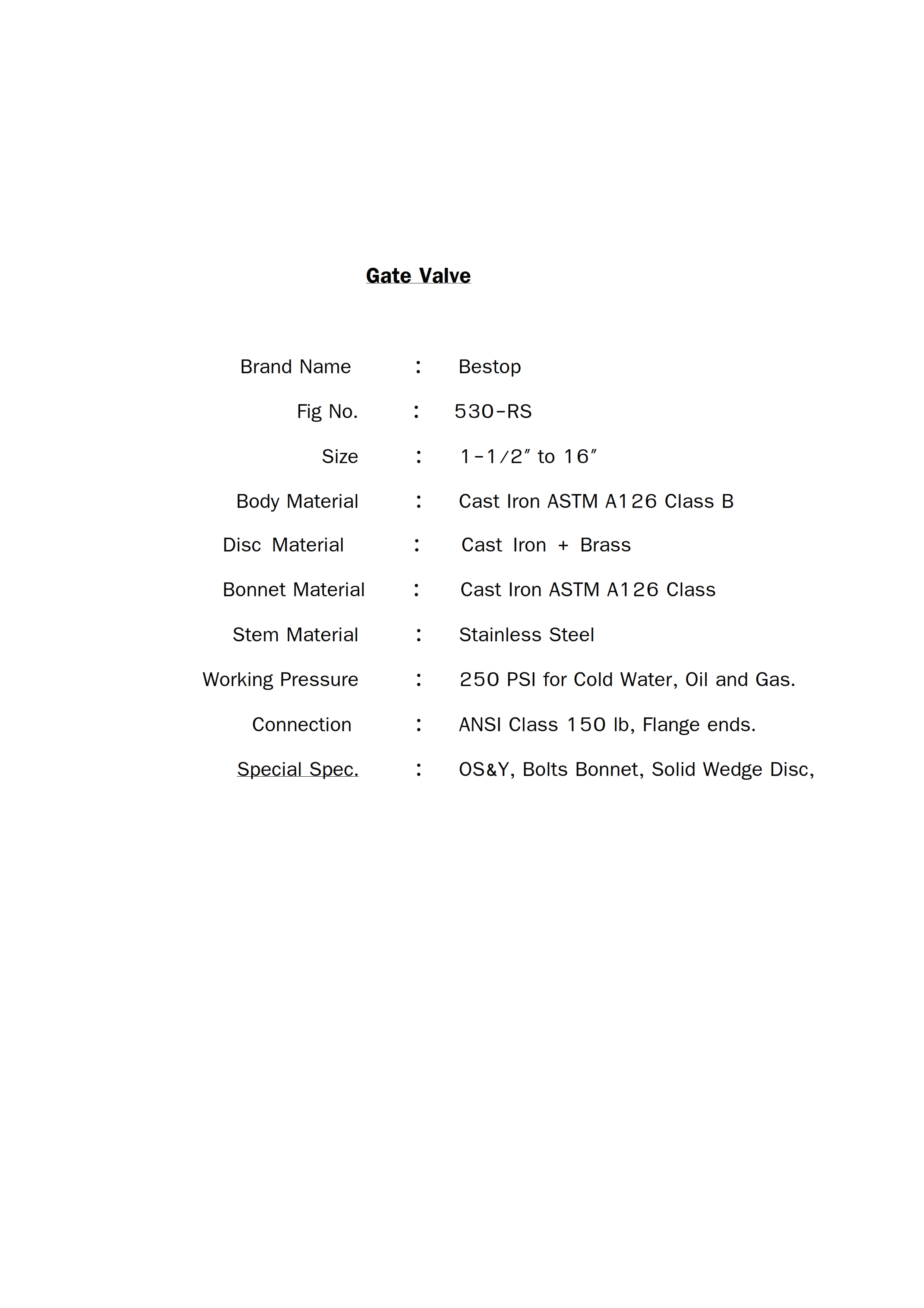 Special Spec. : OS&Y, Bolts Bonnet, Solid Wedge Disc,