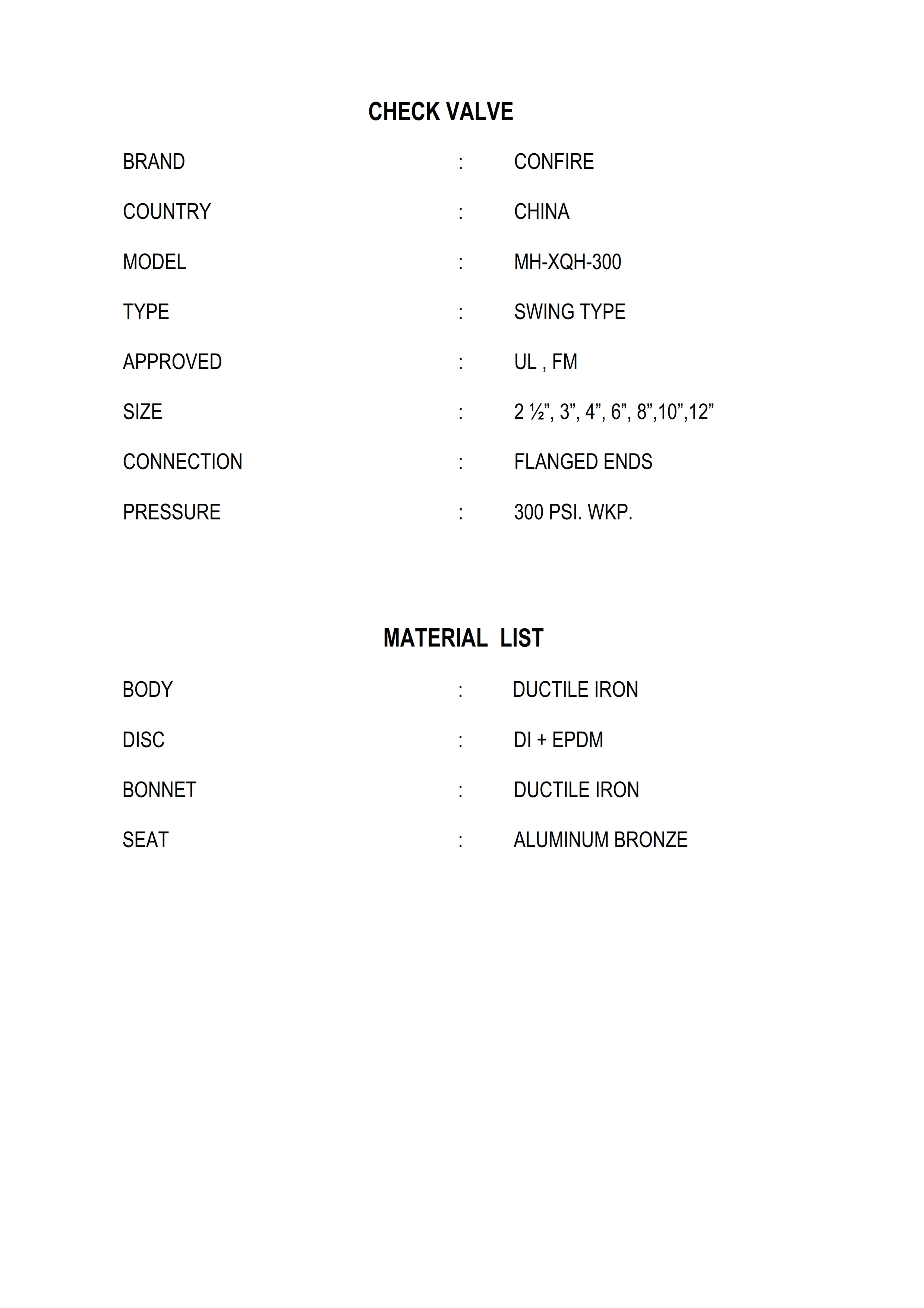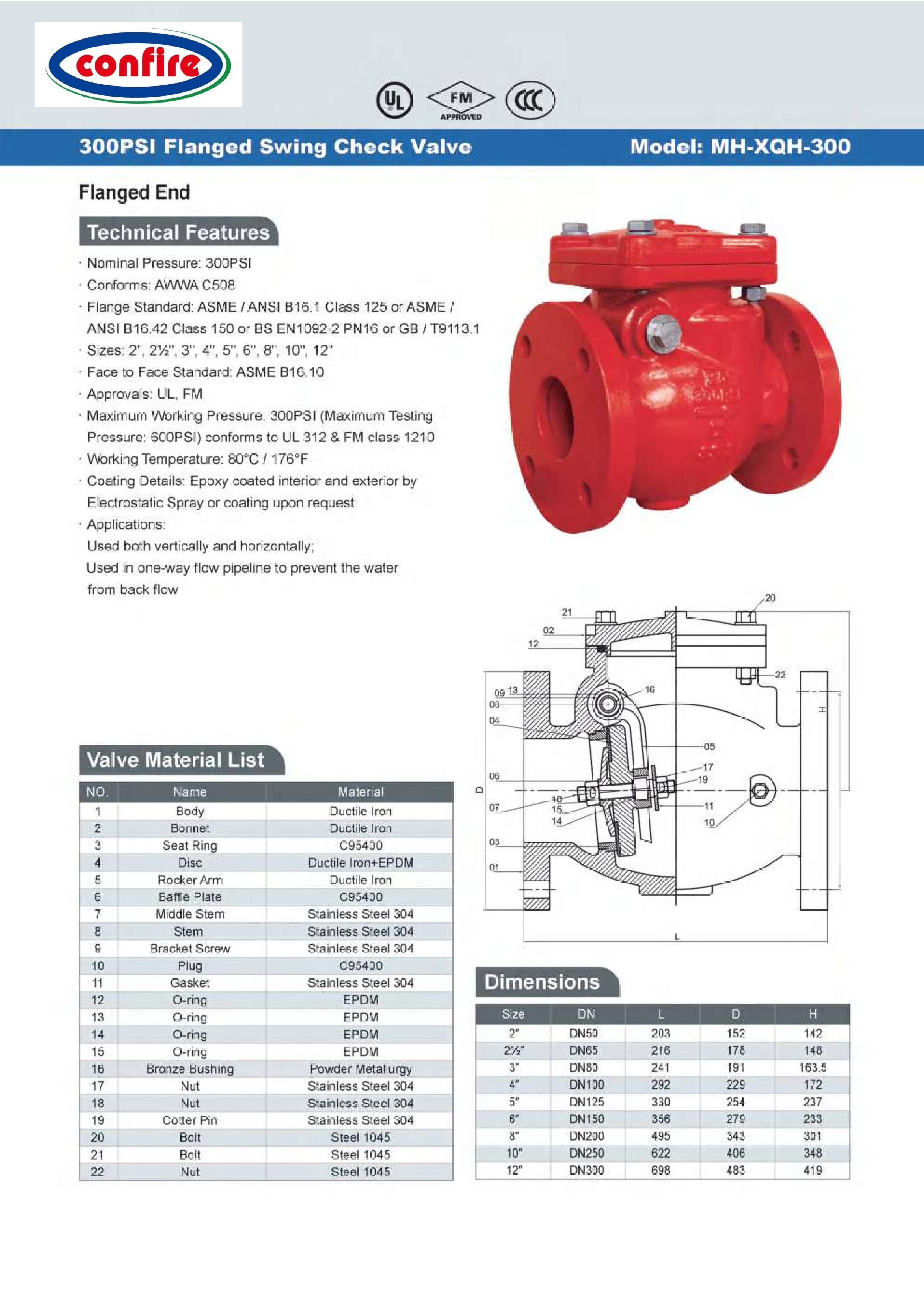 Confire Swing Check Valve Flanged Ends 300 PSI