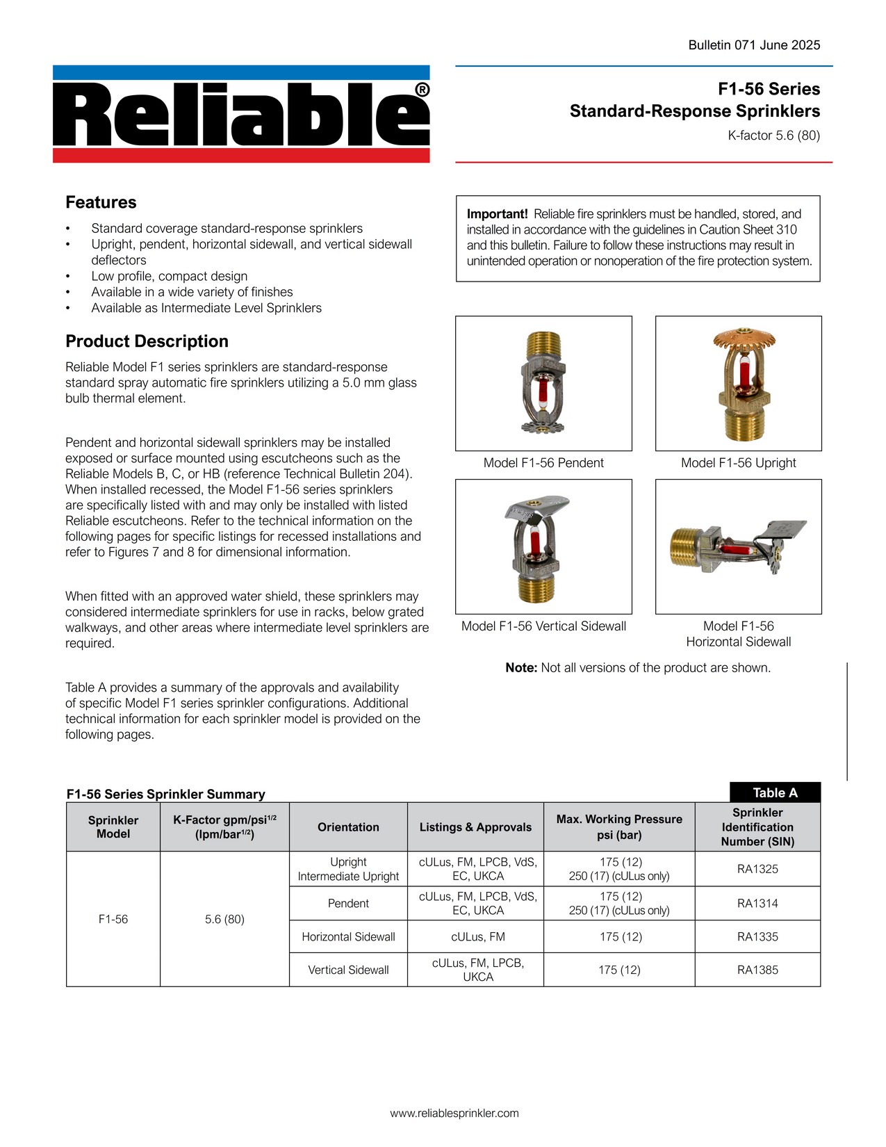 Reliable Sprinklers Head Standard Response K-5.6